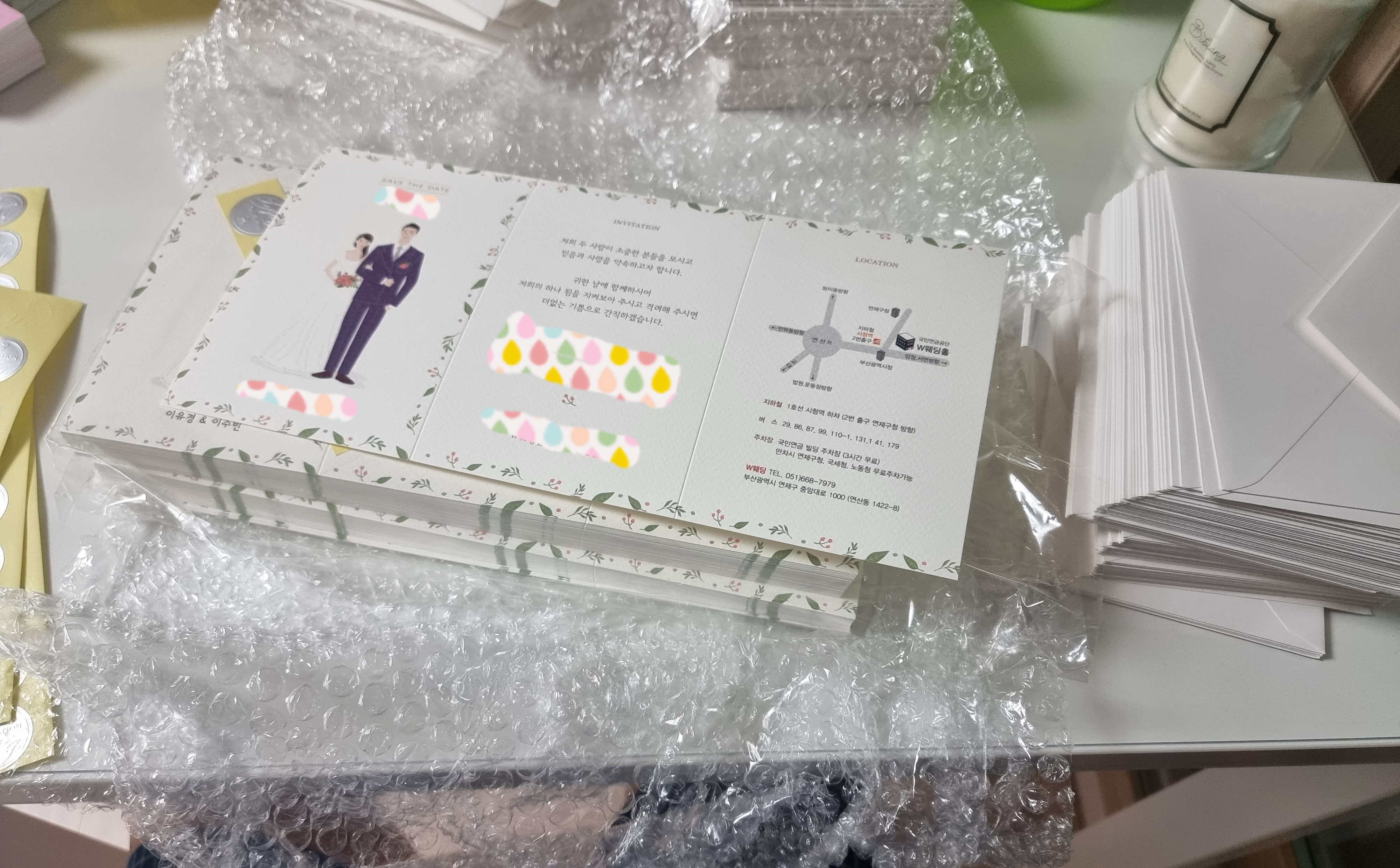 디자인도 샘플과 같아서 200장 접어서 청첩장 미션완료!